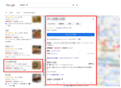 検索結果の中でもGoogleビジネスプロフィールは上位に表示されます。キーワードによってはSEO対策よりも効果が出ることもあるので、対策は必須です。